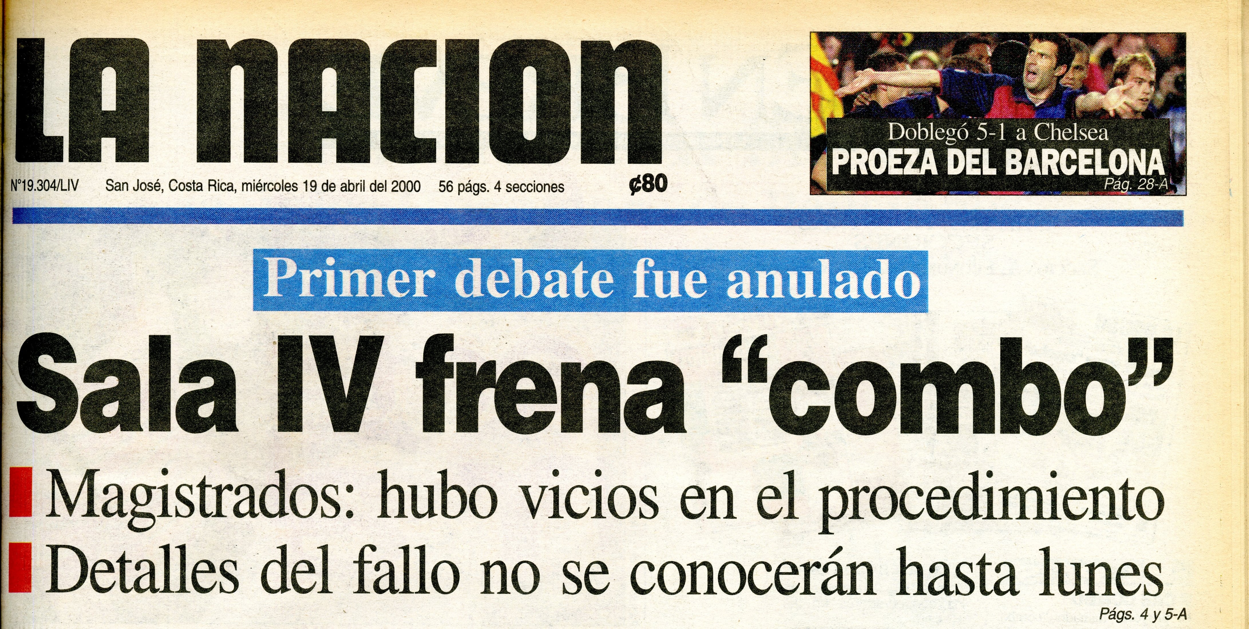 Pero la estocada final la dio la Sala Constitucional. En el voto 03220-2000 del 18 de abril, declaró inconstitucional la aprobación en primer debate. Las razones fueron vicios del procedimiento, como prisa en la aprobación, debate desordenado y vulneración de principios democráticos. La Sala pedía enmendar errores, mientras el presidente de la Asamblea se mostraba molesto.