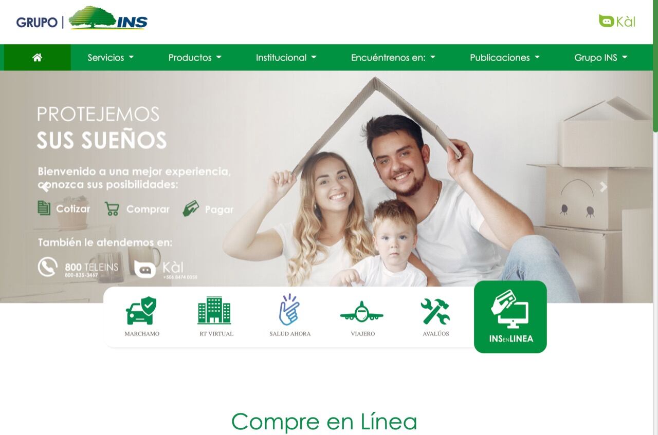 - Seleccionar el servicio que requiere (compra de seguros, cambio en su seguro, trámite de marchamo, trámite de siniestros o exoneraciones de riesgos del trabajo).