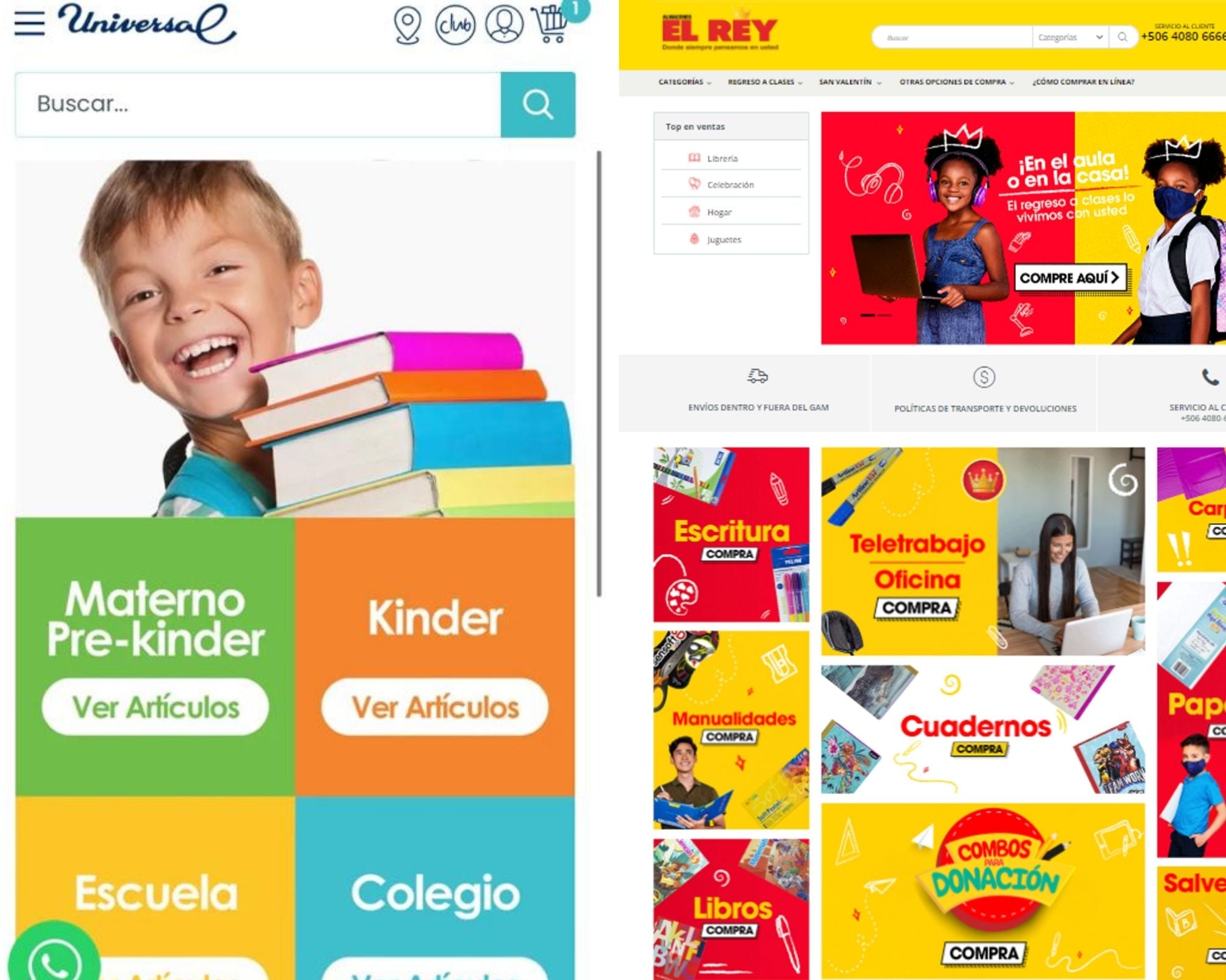 La mayoría de estos almacenes habilitaron en sus sitios web una pestaña específica sobre el regreso a las clases o el inicio del curso lectivo. Es en estas secciones en donde agruparon los útiles escolares tradicionales (cuadernos, papelería, libros, salveques) y artículos menos usuales como mobiliario de oficina o electrónicos (escritorios, sillas, audífonos, tabletas, computadoras, impresoras). Algunos hasta agregaron en esta sección el alcohol líquido para desinfectar las superficies.
