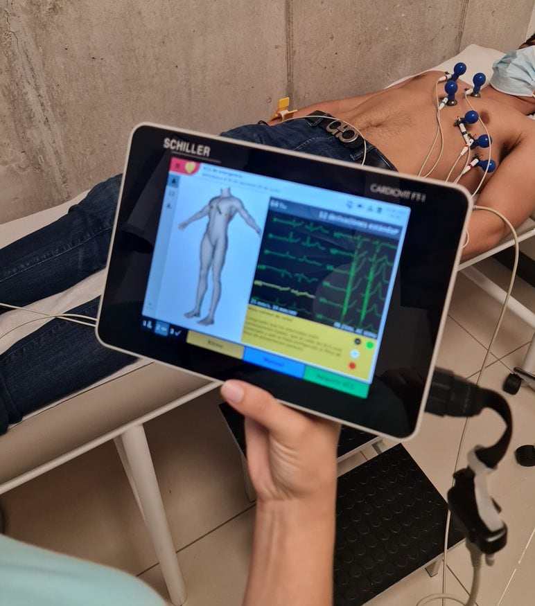 “Las unidades de ultrasonido cardíaco antes eran equipos muy grandes”, explica Carlos. “Ahora son portátiles: se utilizan sondas que se conectan a una tableta para obtener las imágenes”.