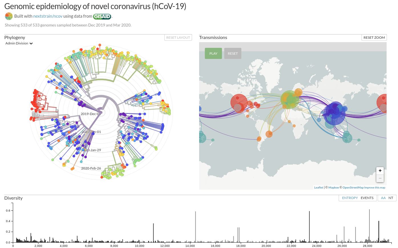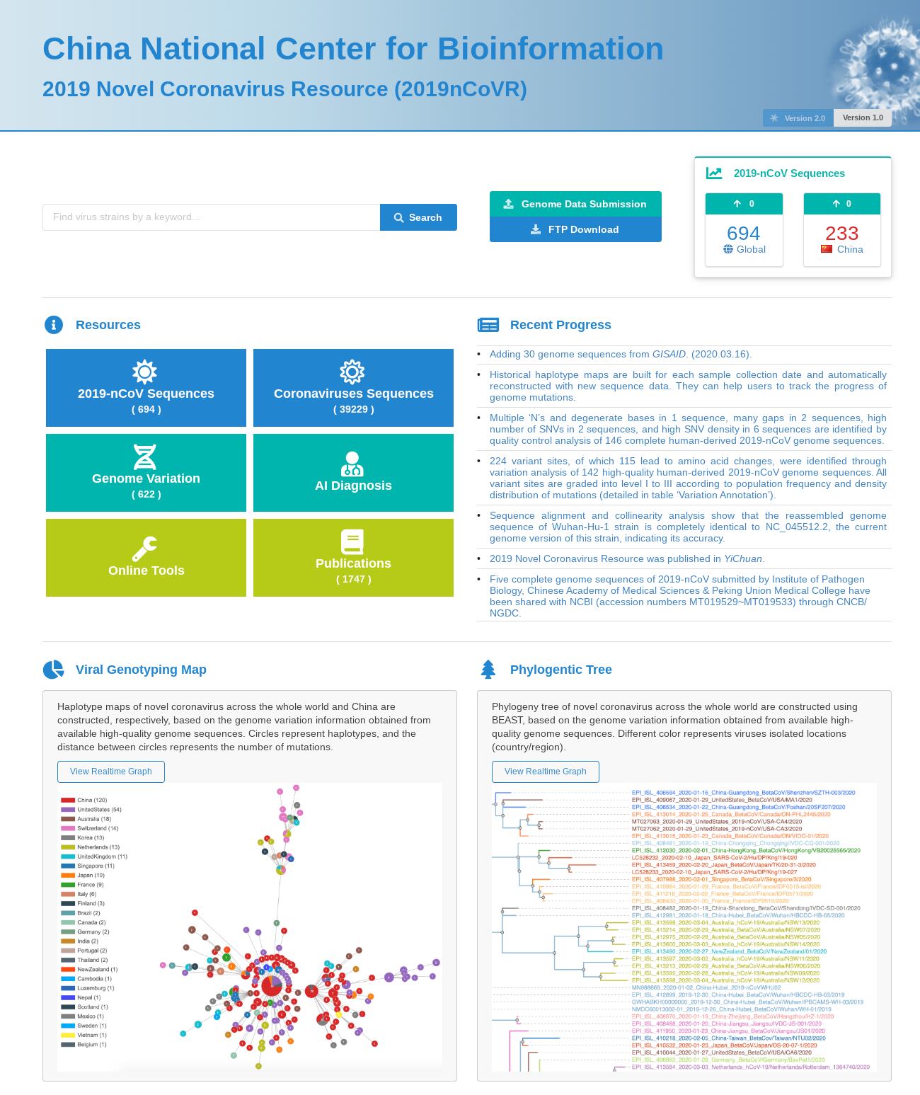 La secuencia del genoma del virus se subió a una base de datos internacional de varias que se han desarrollado. La Organización Mundial de la Salud también ofrece su propia base de datos, documentos y noticias en su sitio web.